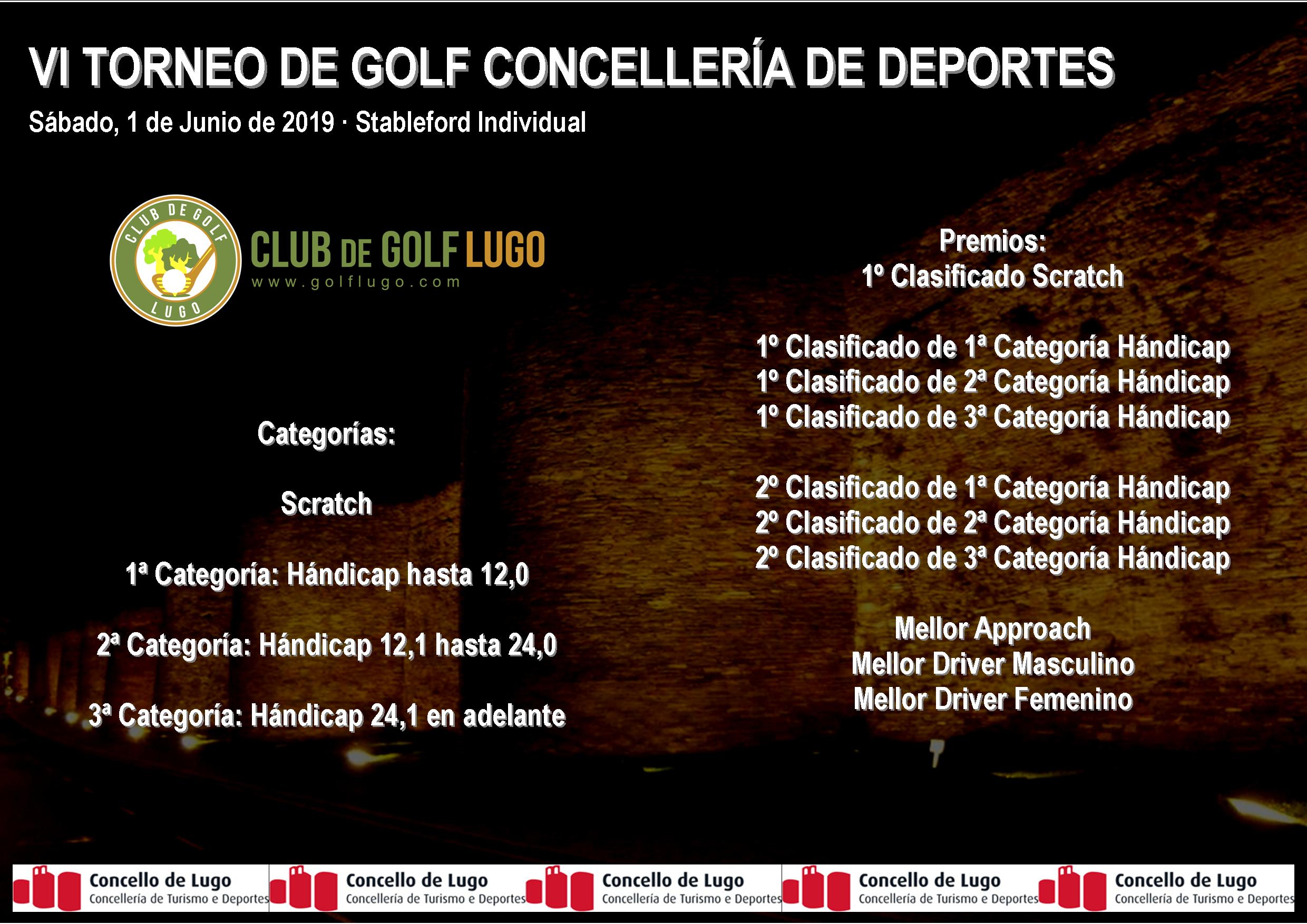 El Club de Golf Lugo acoge este sábado 1 de junio la VI edición del Torneo Concellería de Deportes. Como es habitual se jugará en la modalidad stableford individual a 18 hoyos.